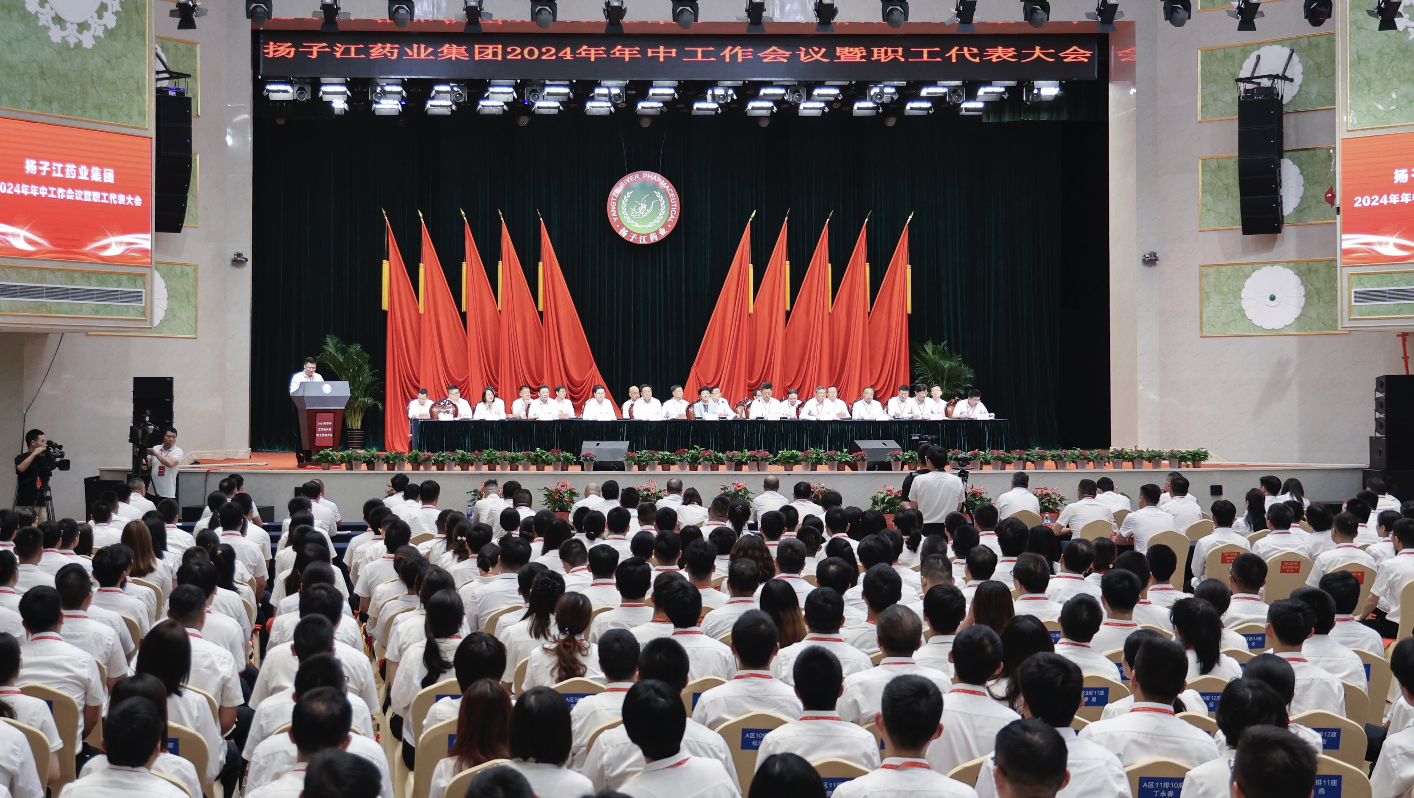 泰州市领导钱忠、叶冬华出席会议。扬子江药业集团党委书记、董事长、总裁徐浩宇作年中工作报告。